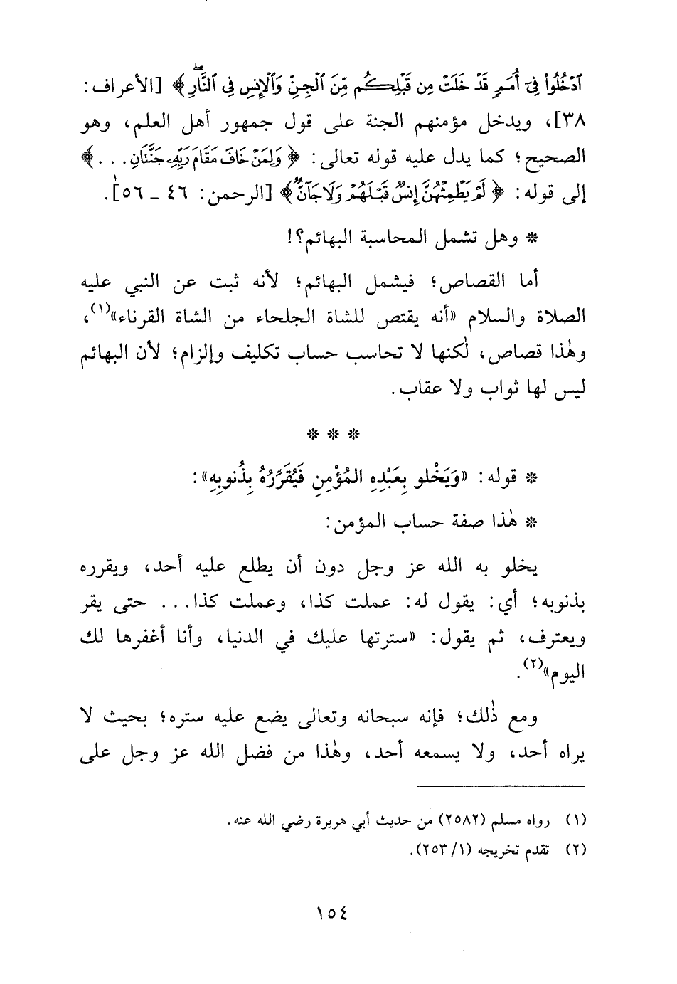 * قوله: "وَيَخْلو بِعَبْدِهِ المُؤْمِنِ فَيقَرِّرُهُ بِذُنوبِهِ":