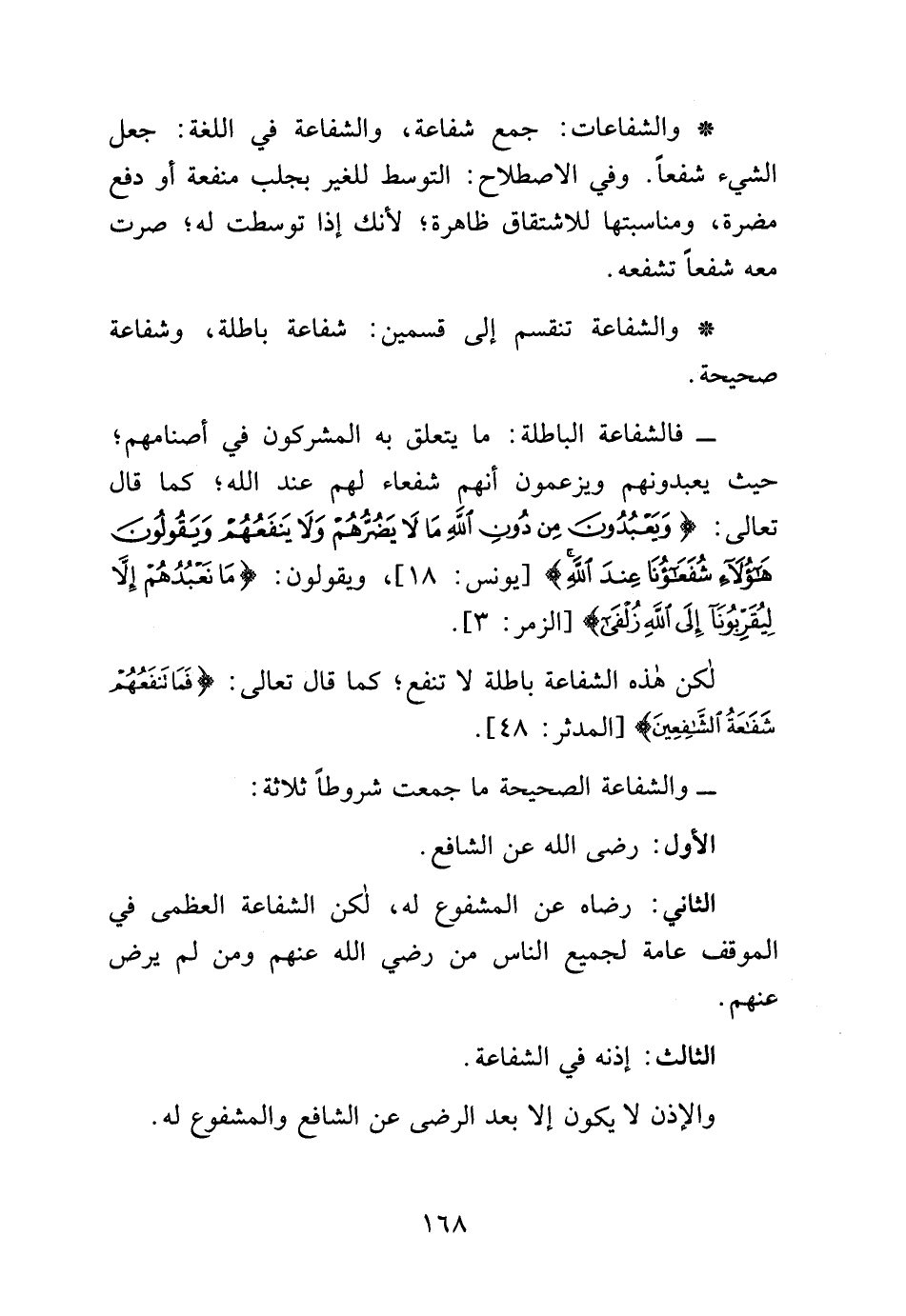 - والشفاعة الصحيحة ما جمعت شروطًا ثلاثة: