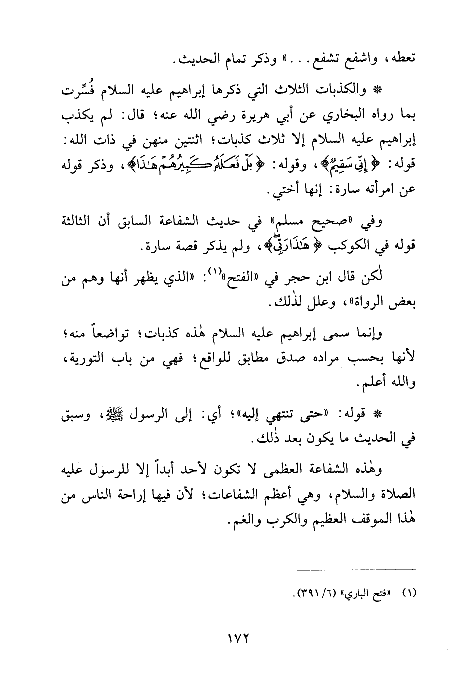 * والكذبات الثلاث التي ذكرها إبراهيم - عليه السلام - فُسِّرت بما رواه البخاري عن أبي هريرة رضي الله عنه؛ قال: لم يكذب إبراهيم - عليه السلام - إلا ثلاث كذبات؛ اثنتين منهن في ذات الله: قوله: {إِنِّي سَقِيمٌ}، وقوله: {بَلْ فَعَلَهُ كَبِيرُهُمْ هَذَا}، وذكر قوله عن امرأته سارة: إنها أختي.