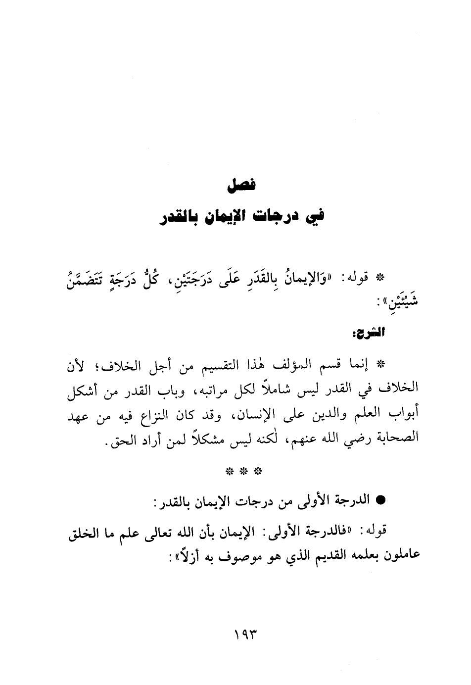 فصل في درجات الإيمان بالقدر