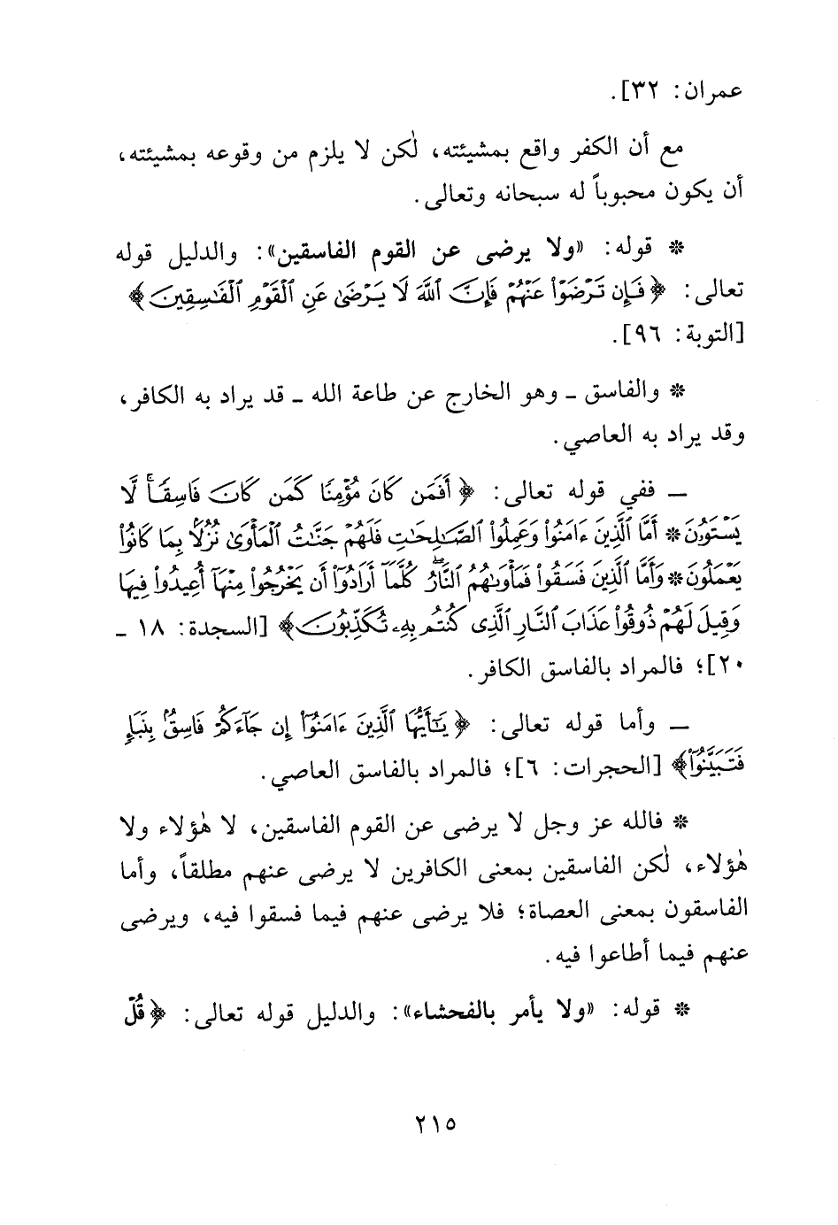 * قوله: "ولا يرضى عن القوم الفاسقين": والدليل قوله تعالى: {فَإِنْ تَرْضَوْا عَنْهُمْ فَإِنَّ اللَّهَ لَا يَرْضَى عَنِ الْقَوْمِ الْفَاسِقِينَ} [التوبة: 96].