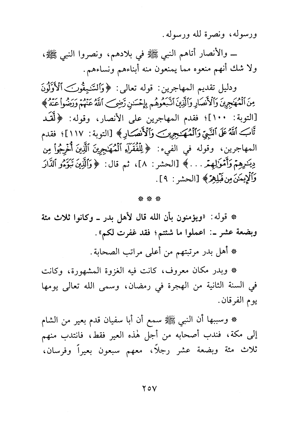* قوله: "ويؤمنون بأن الله قال لأهل بدر -وكانوا ثلاث مئة وبضعة عشر-: اعملوا ما شئتم؛ فقد غفرت لكم".