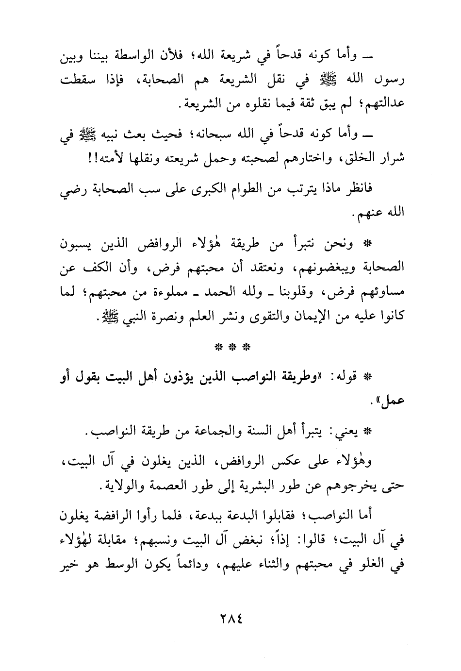 * قوله: "وطريقة النواصب الذين يؤذون أهل البيت بقول أو عمل".