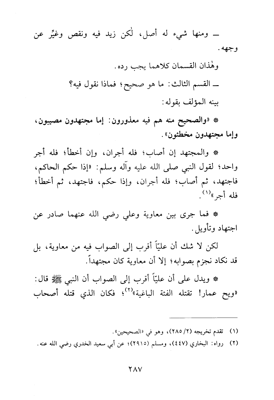 * "والصحيح منه هم فيه معذورون: إما مجتهدون مصيبون، وإما مجتهدون مخطئون".