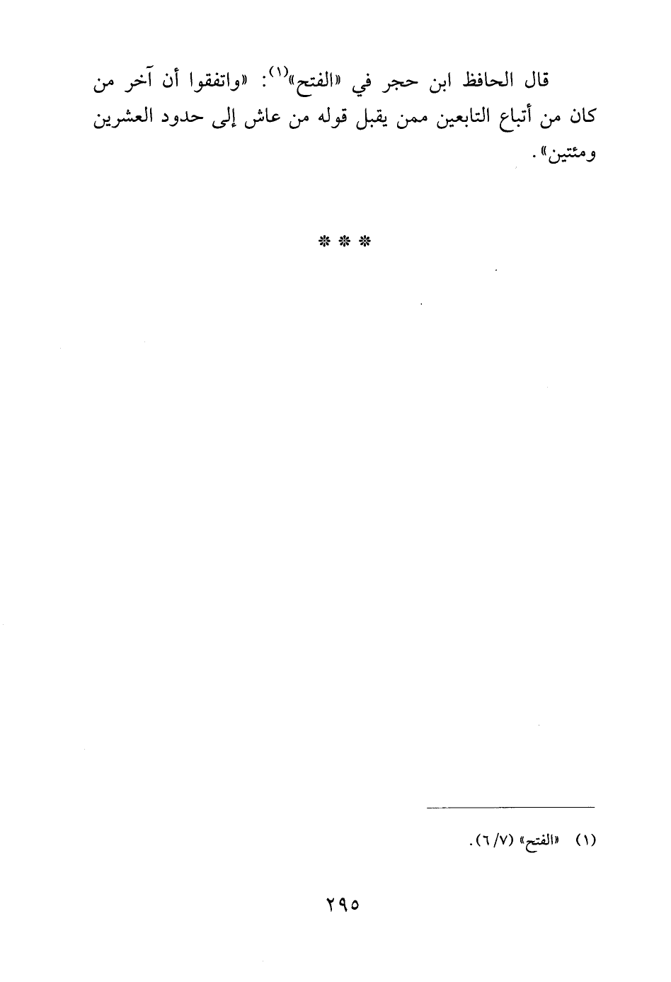 قال الحافظ ابن حجر في "الفتح" (¬1): "واتفقوا أن آخر من كان من أتباع التّابعين ممن يقبل قوله من عاش إلى حدود العشرين ومئتين".