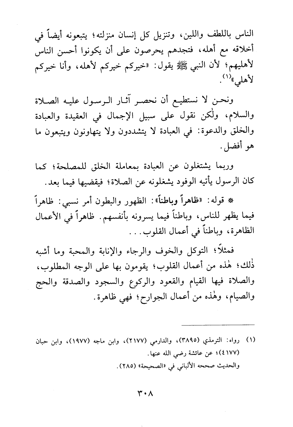 * قوله: "ظاهرًا وباطنًا": الظهور والبطون أمر نسبي: ظاهرًا فيما يظهر للناس، وباطنًا فيما يسرونه بأنفسهم. ظاهرًا في الأعمال الظاهرة، وباطنًا في أعمال القلوب ...