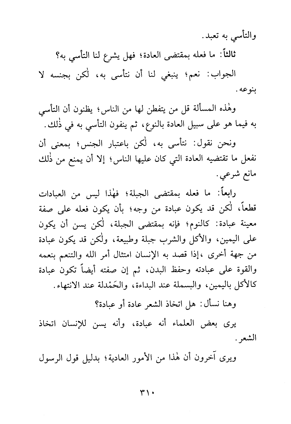 ثالثًا: ما فعله بمقتضى العادة؛ فهل يشرع لنا التأسي به؟