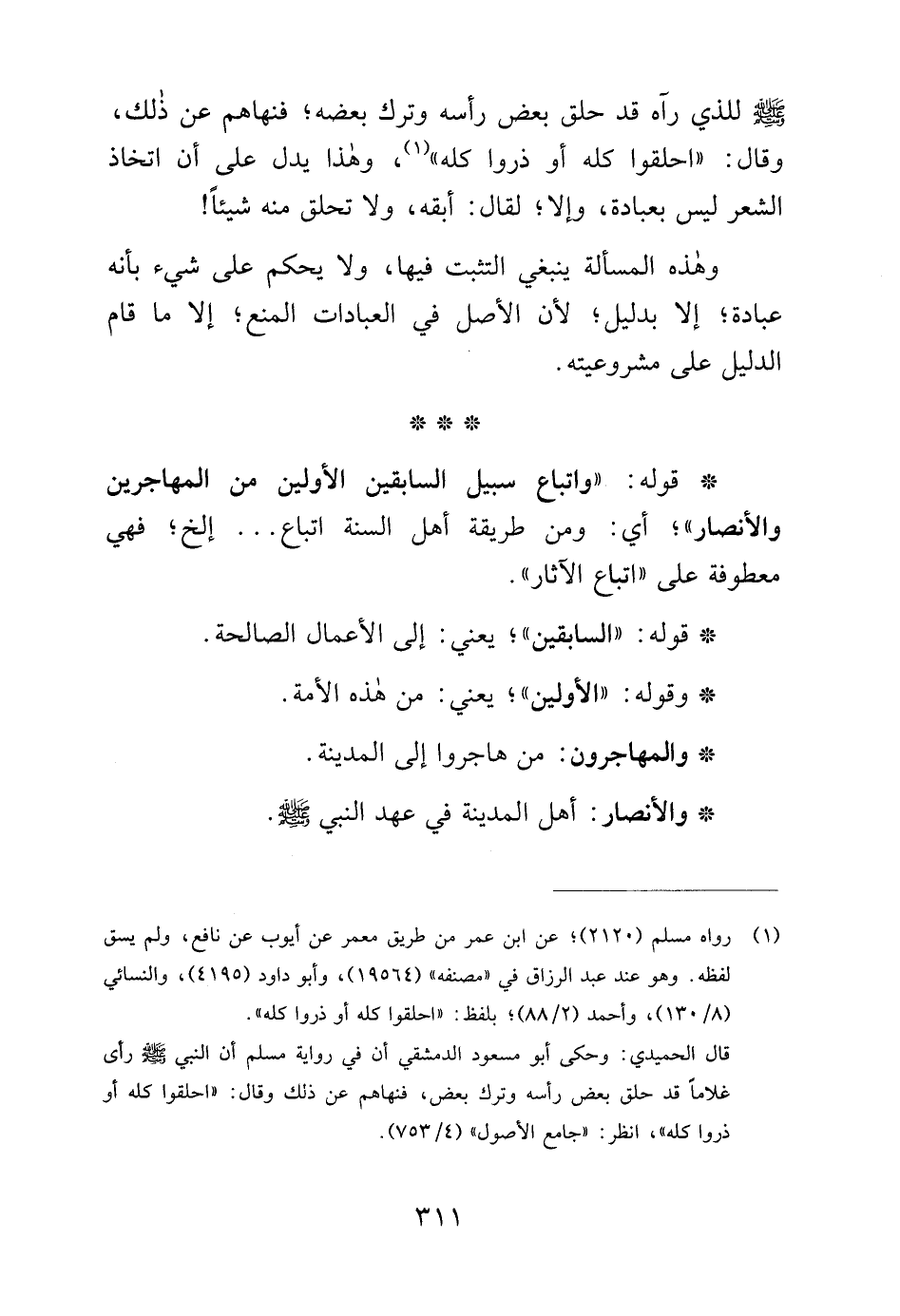 (¬1) رواه مسلم (2120)؛ عن ابن عمر من طريق معمر عن أيوب عن نافع، ولم يسق لفظه. وهو عند عبد الرزاق في "مصنفه" (19564)، وأبو داود (4195)، والنسائي (8/ 130)، وأحمد (2/ 88)؛ بلفظ: "احلقوا كله أو ذروا كله".