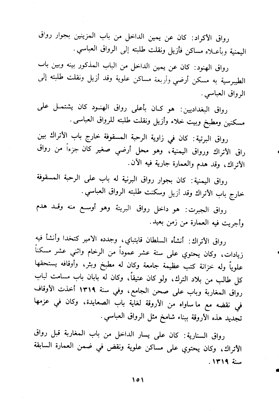 كان بجوار رواق البرنية له باب على الرحبة المسقوفة خارج باب الأتراك وقد أزيل وسكنت طلبته الرواق العباسي.