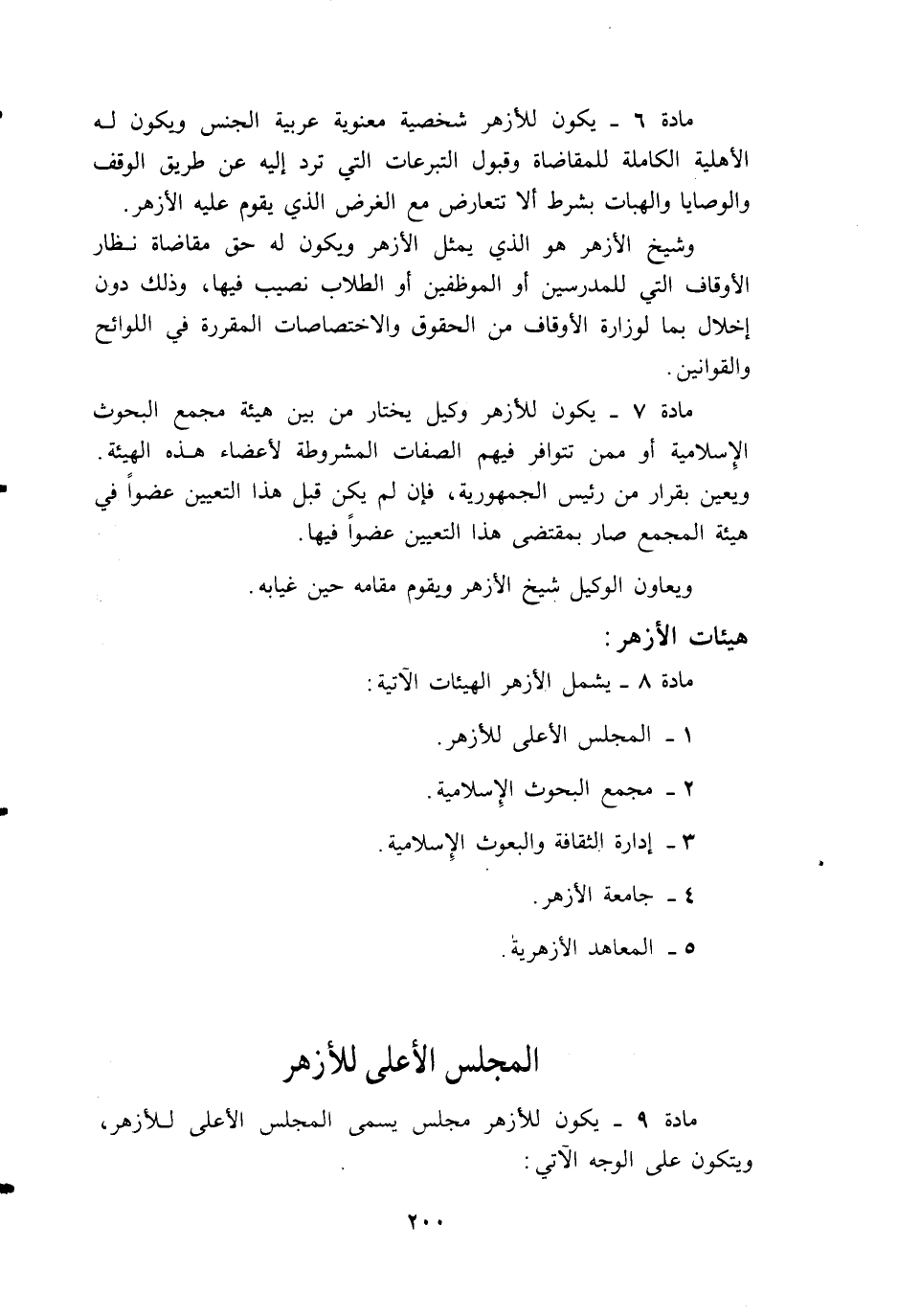مادة 9 - يكون للأزهر مجلس يسمى المجلس الأعلى للأزهر، ويتكون على الوجه الآتي: