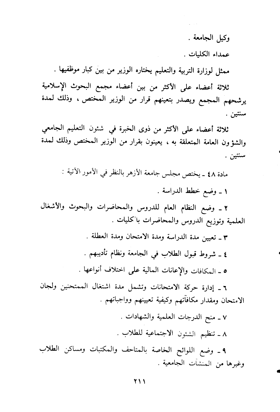 مادة 48 - يختص مجلس جامعة الأزهر بالنظر في الأمور الآتية: