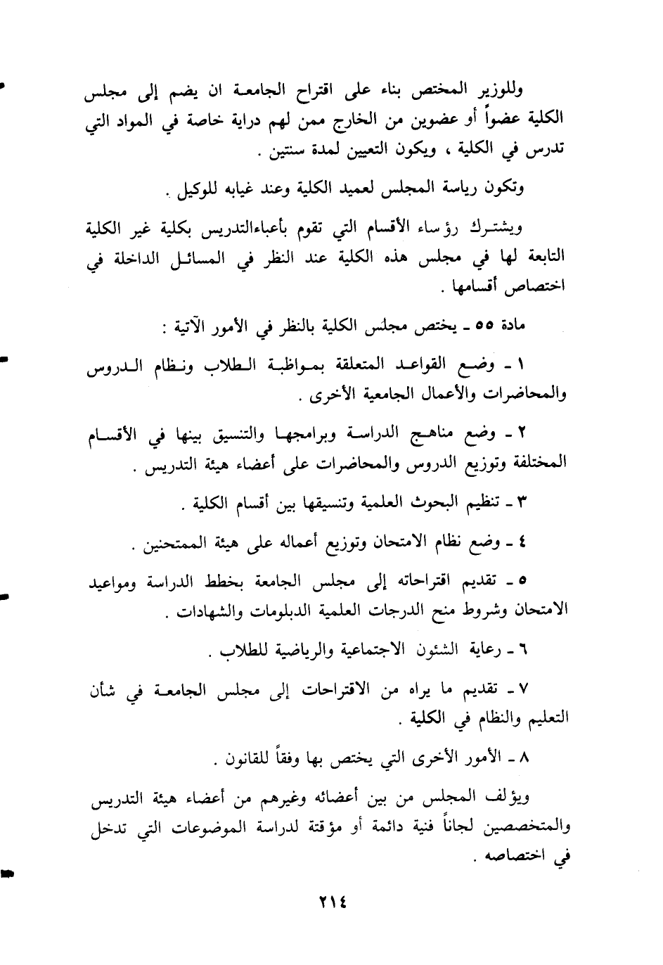 مادة 55 - يختص مجلس الكلية بالنظر في الأمور الآتية: