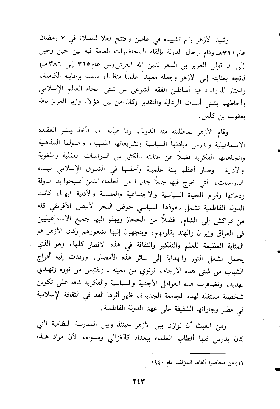 ومن العبث أن نوازن بين الأزهر حينئذ وبين المدرسة النظامية التي كان يدرس فيها أقطاب العلماء ببغداد كالغزالي وسواه، لأن مواد هذه