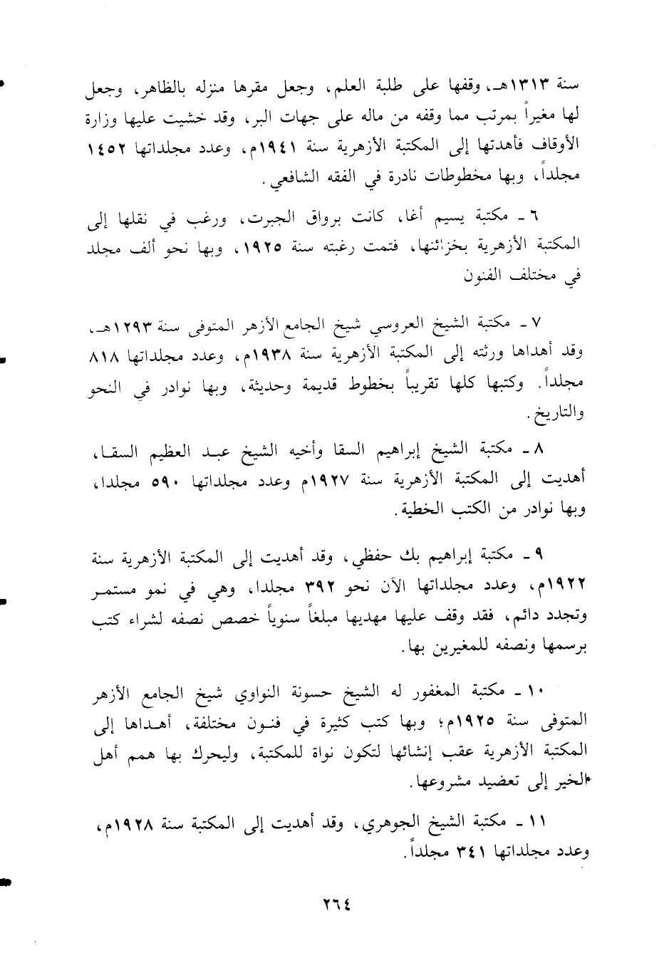 11 - مكتبة الشيخ الجوهري، وقد أهديت إلى المكتبة سنة 1928 م، وعدد مجلداتها 341 مجلدا.