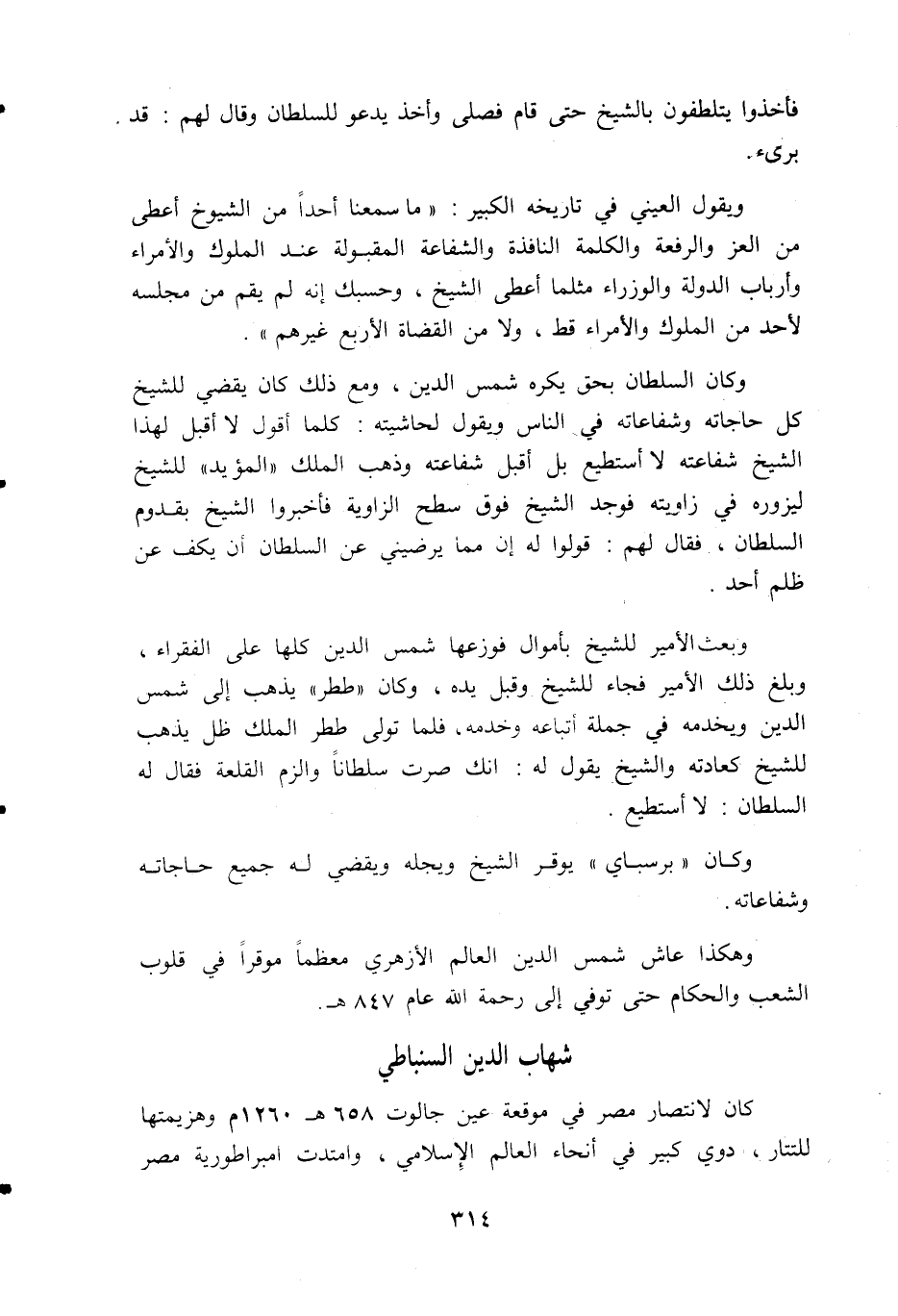 وكان «برسباي» يوقر الشيخ ويجله ويقضي له جميع حاجاته وشفاعاته.
