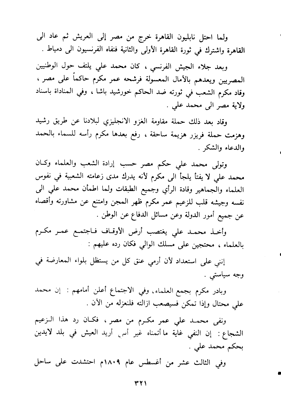 وبعد جلاء الجيش الفرنسي، كان محمد علي يلتف حول الوطنيين المصريين ويعدهم بالآمال المعسولة فرشحه عمر مكرم حاكما على مصر، وقاد مكرم الشعب في ثورته ضد الحاكم خورشيد باشا، وفي المناداة باسناد ولاية مصر الى محمد علي.