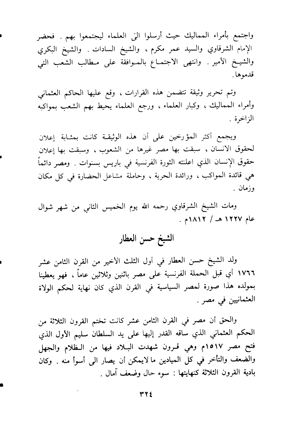 والحق أن مصر في القرن الثامن عشر كانت تختم القرون الثلاثة من الحكم العثماني الذي ساقه القدر إليها على يد السلطان سليم الأول الذي فتح مصر 1517 م وهي قرون شهدت البلاد فيها من الظلام والجهل والضعف والتأخر في كل الميادين ما لا يمكن أن يصار الى أسوأ منه. وكان بادية القرون الثلاثة كنهايتها: سوء حال وضعف آمال.