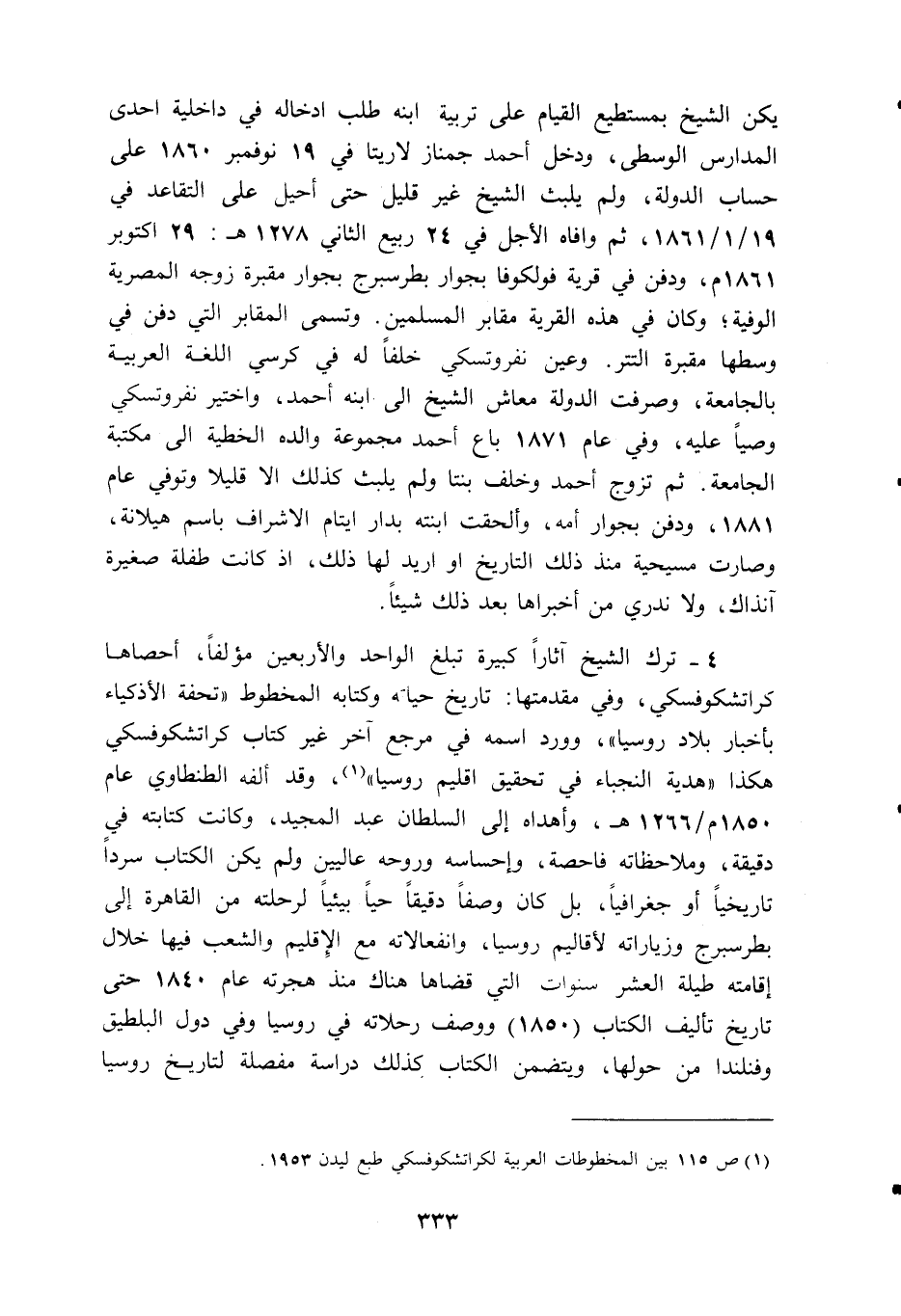 1) ص 115 بين المخطوطات العربية لكراتشكوفسكي طبع ليدن 1953.