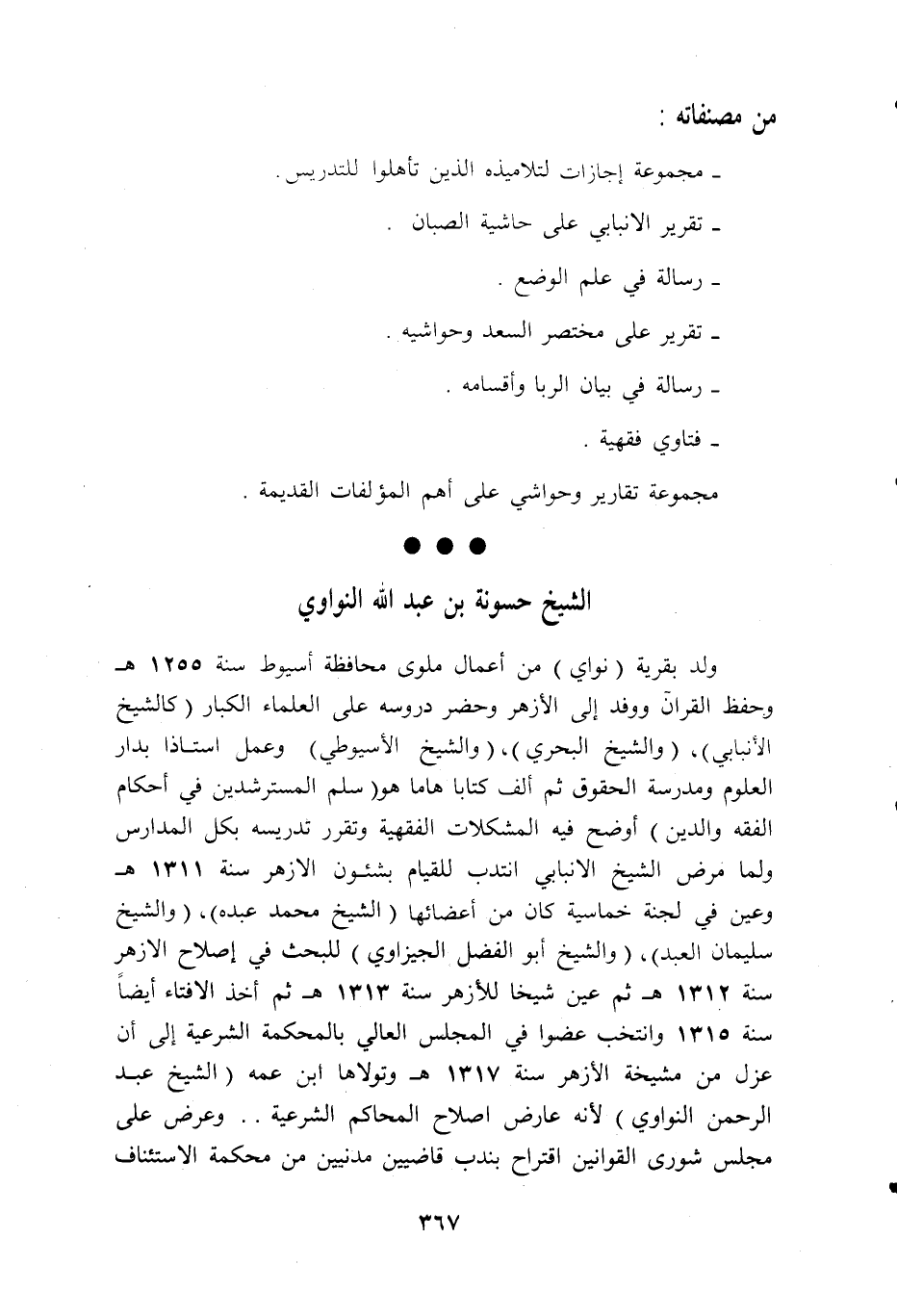 ولد بقرية (نواي) من أعمال ملوى محافظة أسيوط سنة 1255 ه وحفظ القرآن ووفد إلى الأزهر وحضر دروسه على العلماء الكبار (كالشيخ الأنبابي)، (و الشيخ البحري)، (و الشيخ الأسيوطي) وعمل استاذا بدار العلوم ومدرسة الحقوق ثم ألف كتابا هاما هو (سلم المسترشدين في أحكام الفقه والدين) أوضح فيه المشكلات الفقهية وتقرر تدريسه بكل المدارس ولما مرض الشيخ الانبابي انتدب للقيام بشئون الأزهر سنة 1311 ه وعين في لجنة خماسية كان من أعضائها (الشيخ محمد عبده)، (و الشيخ سليمان العبد)، (و الشيخ أبو الفضل الجيزاوي) للبحث في إصلاح الأزهر سنة 1312 ه ثم عين شيخا للأزهر سنة 1313 ه ثم أخذ الافتاء أيضا سنة 1315 وانتخب عضوا في المجلس العالي بالمحكمة الشرعية إلى أن عزل من مشيخة الأزهر سنة 1317 ه وتولاها ابن عمه (الشيخ عبد الرحمن النواوي) لأنه عارض اصلاح المحاكم الشرعية. . وعرض على مجلس شورى القوانين اقتراح بندب قاضيين مدنيين من محكمة الاستئناف