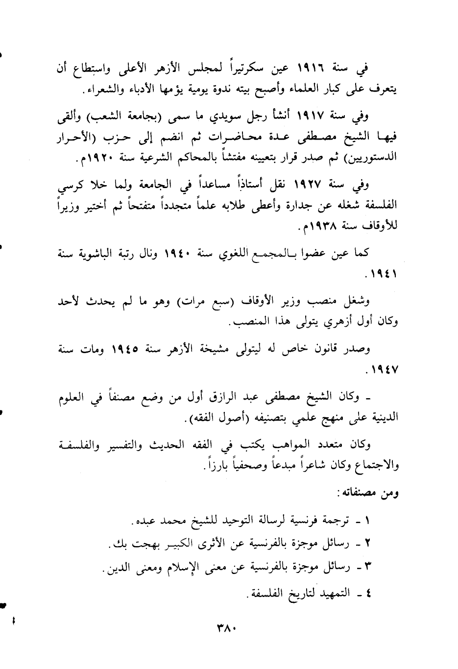 -و كان الشيخ مصطفى عبد الرازق أول من وضع مصنفا في العلوم الدينية على منهج علمي بتصنيفه (أصول الفقه).
