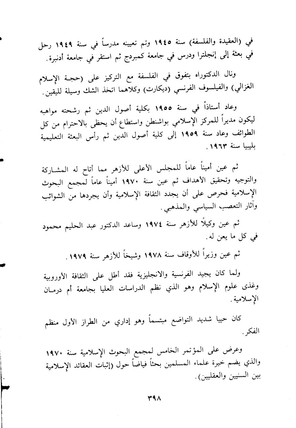 ثم عين وزيرا للأوقاف سنة 1978 وشيخا للأزهر سنة 1979.