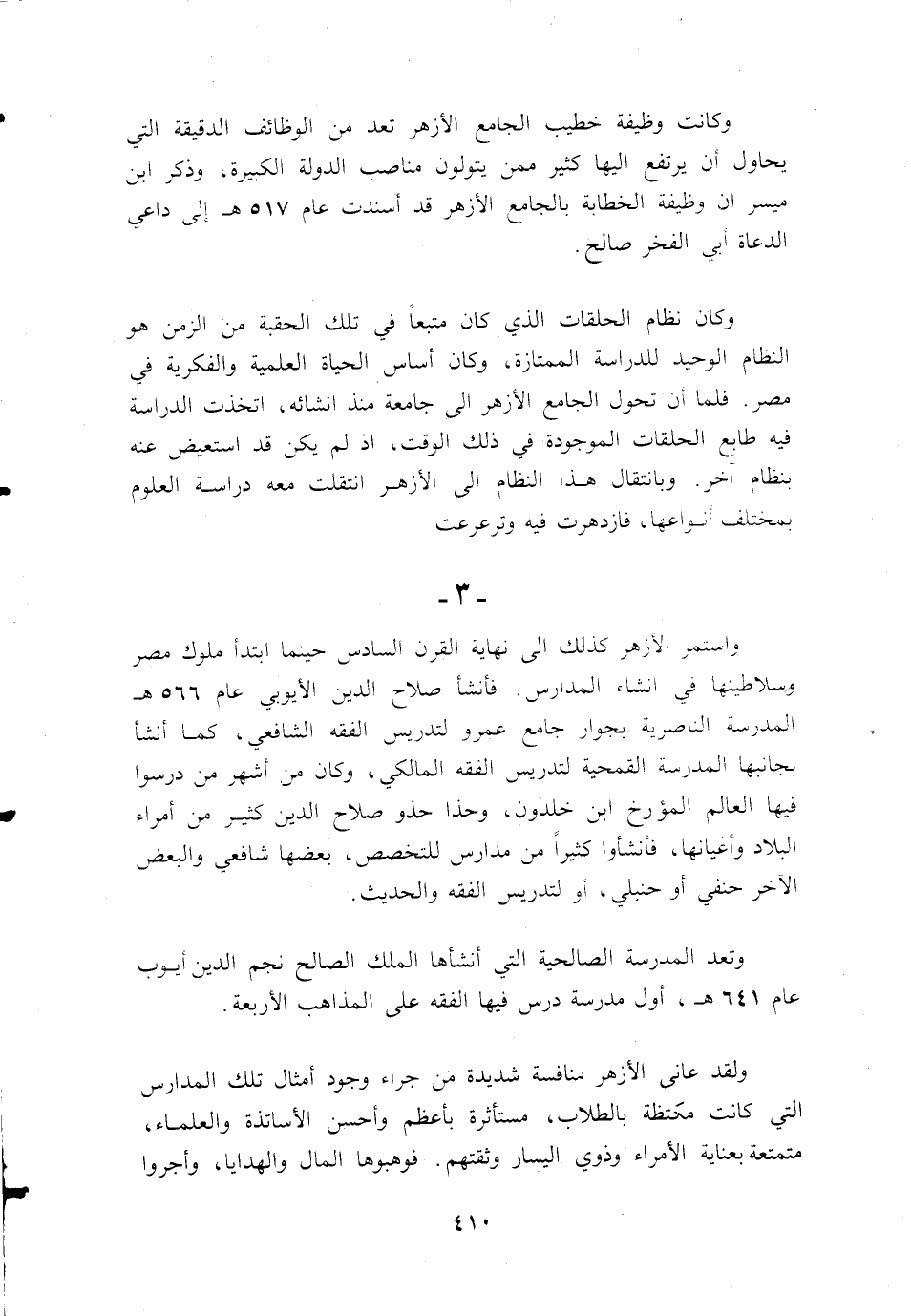 وكان نظام الحلقات الذي كان متبعا في تلك الحقبة من الزمن هو النظام الوحيد للدراسة الممتازة، وكان أساس الحياة العلمية والفكرية في مصر. فلما أن تحول الجامع الأزهر الى جامعة منذ انشائه، اتخذت الدراسة فيه طابع الحلقات الموجودة في ذلك الوقت، اذ لم يكن قد استعيض عنه بنظام آخر. وبانتقال هذا النظام الى الأزهر انتقلت معه دراسة العلوم بمختلف أنواعها، فازدهرت فيه وترعرعت