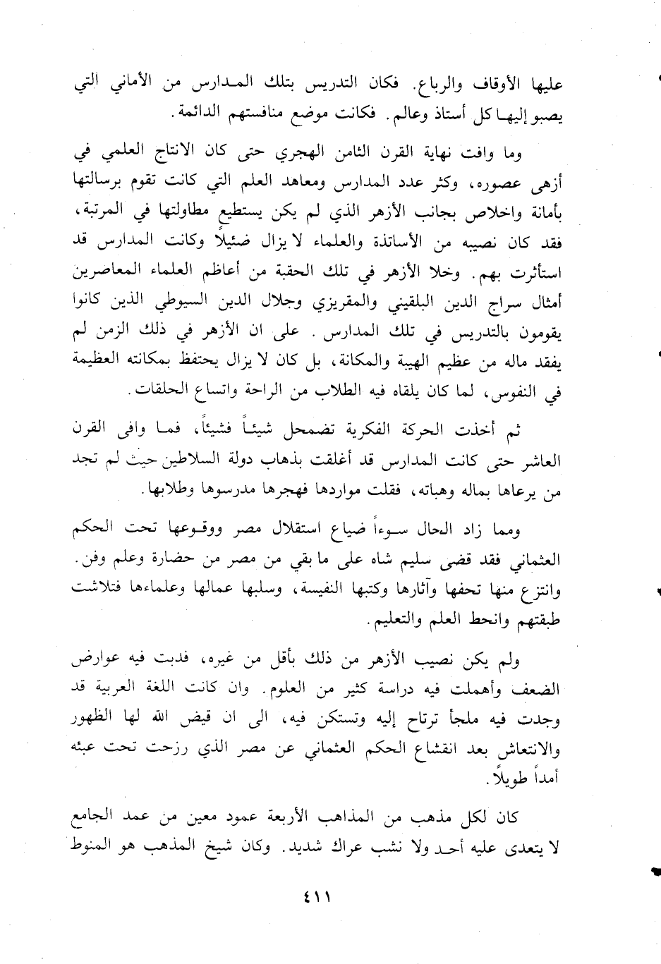 ولم يكن نصيب الأزهر من ذلك بأقل من غيره، فدبت فيه عوارض الضعف وأهملت فيه دراسة كثير من العلوم. وان كانت اللغة العربية قد وجدت فيه ملجأ ترتاح إليه وتستكن فيه، الى ان قيض اللّه لها الظهور والانتعاش بعد انقشاع الحكم العثماني عن مصر الذي رزحت تحت عبئه أمدا طويلا.