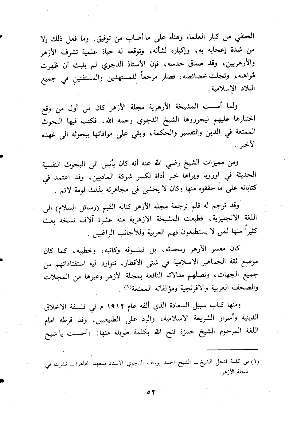 1) من كلمة لنجل الشيخ-الشيخ أحمد يوسف الدجوي الأستاذ بمعهد القاهرة-نشرت في مجلة الأزهر