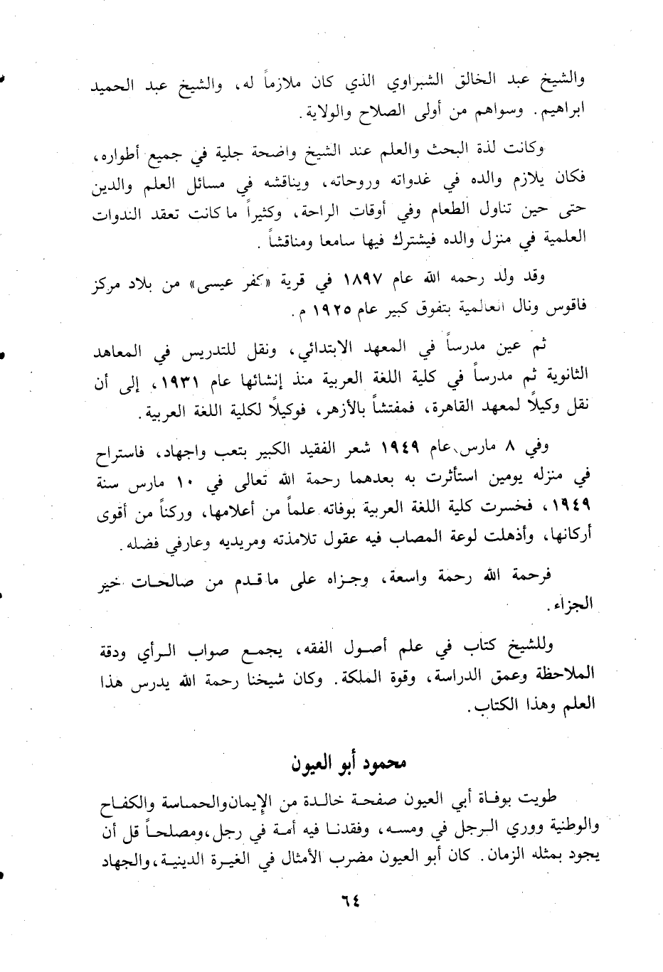 وقد ولد رحمه اللّه عام 1897 في قرية «كفر عيسى» من بلاد مركز فاقوس ونال العالمية بتفوق كبير عام 1925 م.