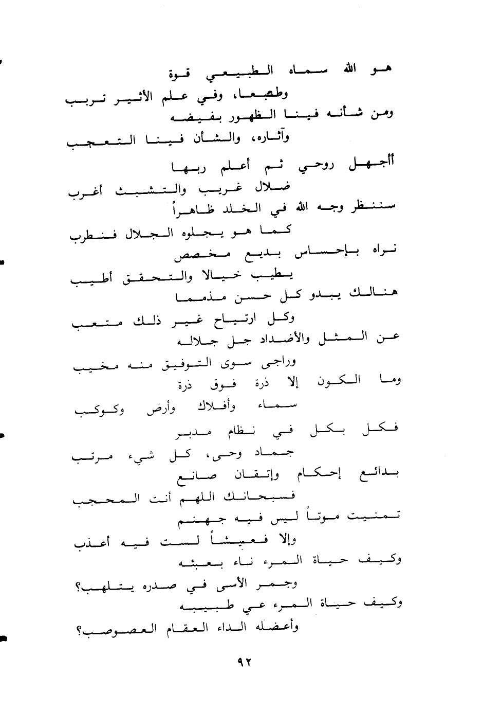فكل بكل في نظام مدبر ... جماد وحى، كل شيء مرتب