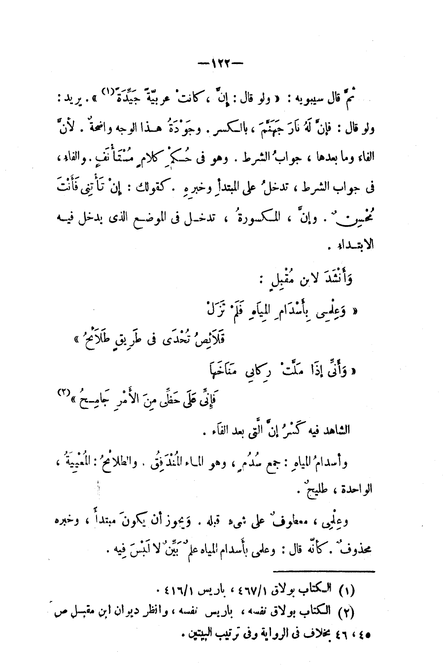 ثم قال سيبويه: (ولو قال (فإنّ) كانت عربية جيدة). يريدْ ولو قال: فإنّ له نار جهنم، بالكسر.