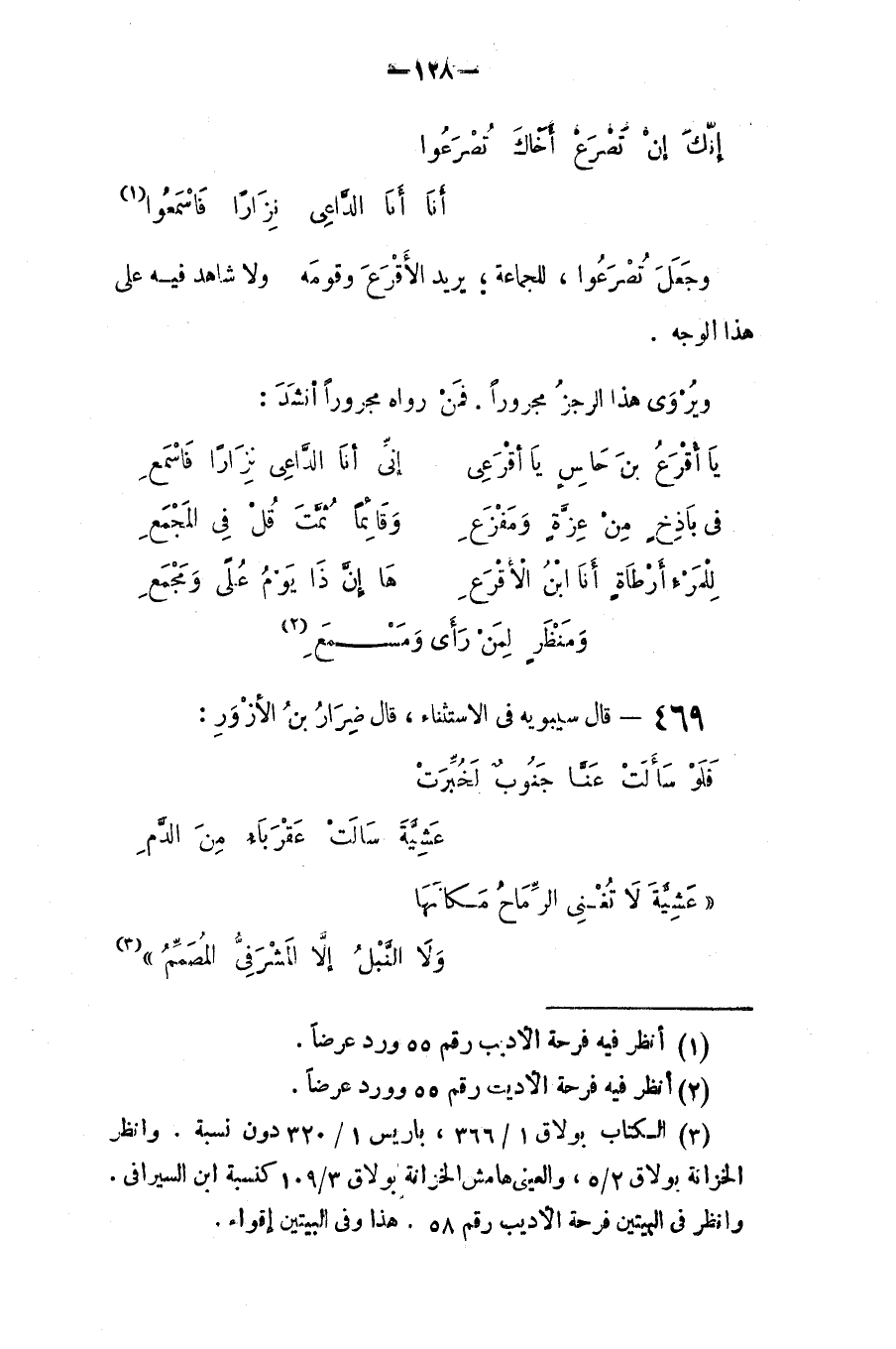 قال سيبويه في الاستثناء، قال ضِرار بن الأزور: