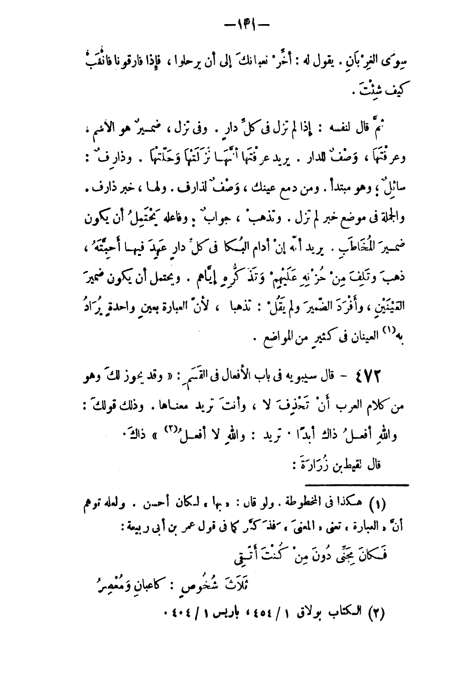 قال سيبويه في باب الأفعال، في القسم: (وقد يجوز لكْ وهو من كلام العرب أن تحذف (لا) وأنت تريد معناها، وذلك قولك: والله أفعل ذاك أبداً. تريدْ والله لا أفعل) ذاك. قال لقيط بن زُرارة: