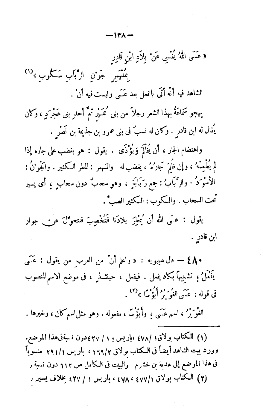(عسى الله يُغني عن بِلادِ ابن قادرٍ ... بمنهمرٍ جَوْنِ الرَّباب سَكوبِ)