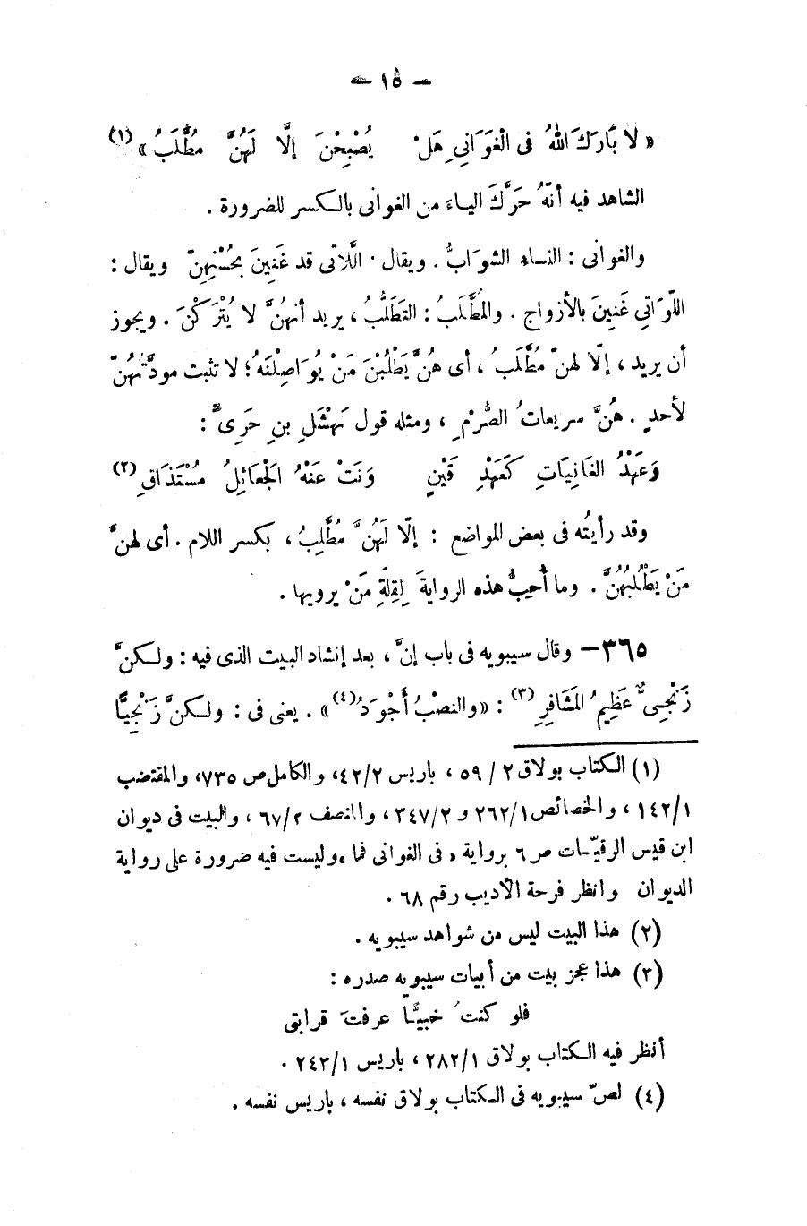 الشاهد فيه إنه حرك الياء من (الغواني) بالكسر للضرورة: والغواني: النساء الشواب، يقال: اللواتي قد غنين بحسنهن، ويقال: اللواتي غنين بالأزواج. والمطلب: التطلب. يريد أنهن لا يتركن. ويجوز أن يريد: إلا لهن مطلب أي هن يطلبن من يواصلنه. لا تثبيت مودتهن لأحد، هن سريعات الصرم.