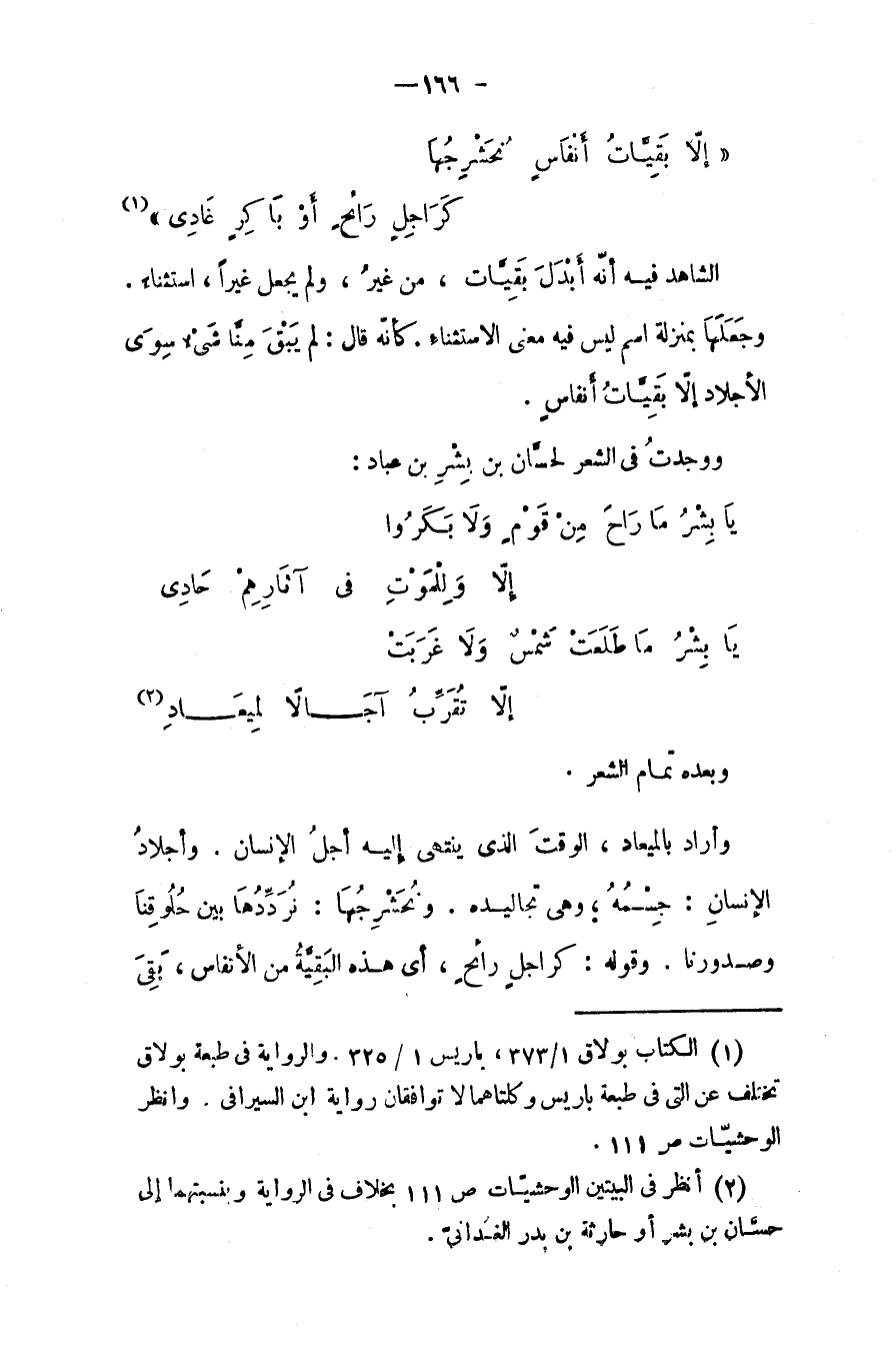 (إلا بقياتُ أنفاسٍ نحشرجها ... كراحلٍ رائح أو باكر غادي)