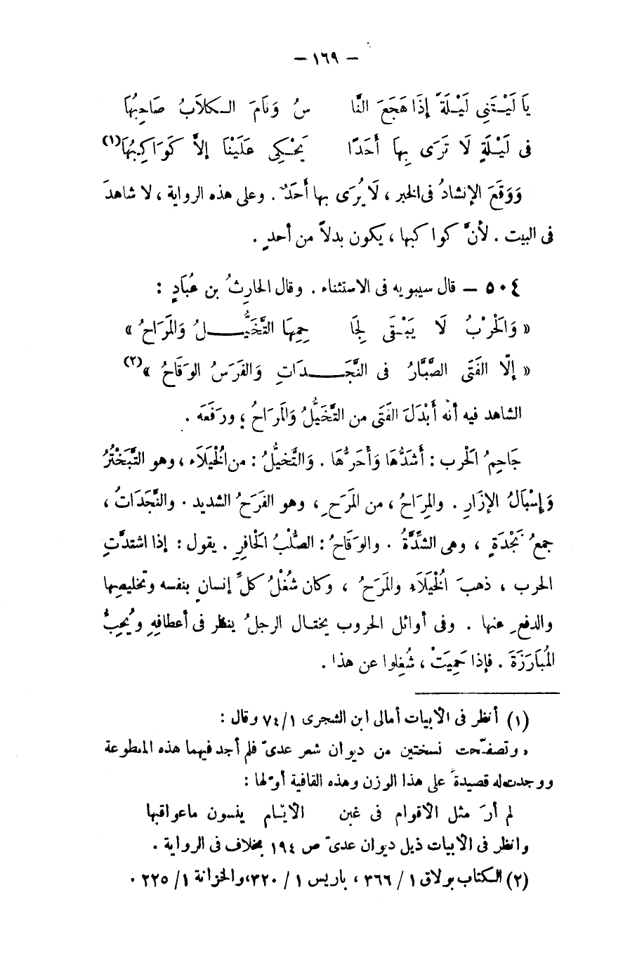 قال سيبويه في الاستثناء، وقال الحارث بن عُباد:
