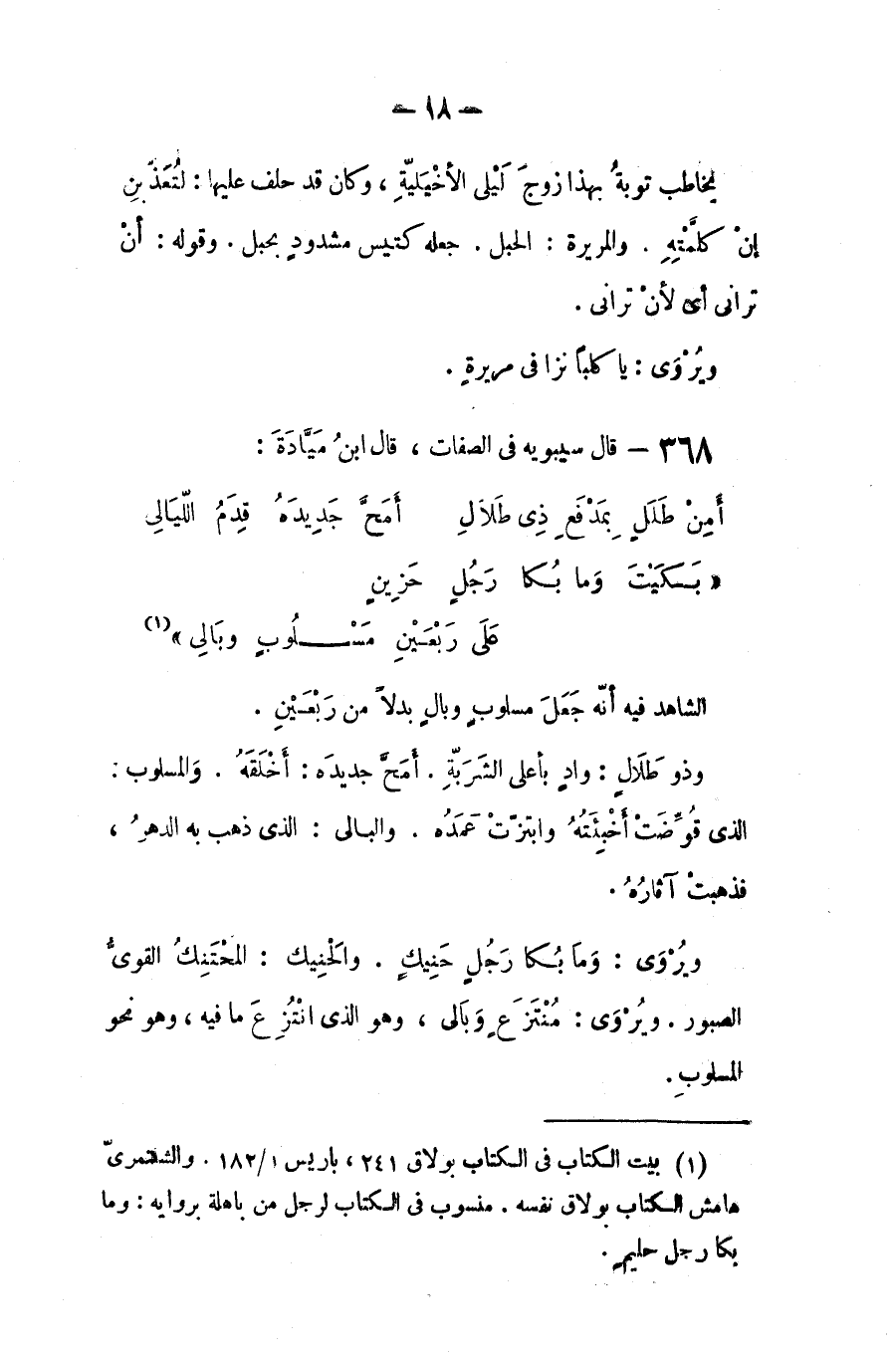 قال سيبويه في الصفات، قال ابن ميادة: