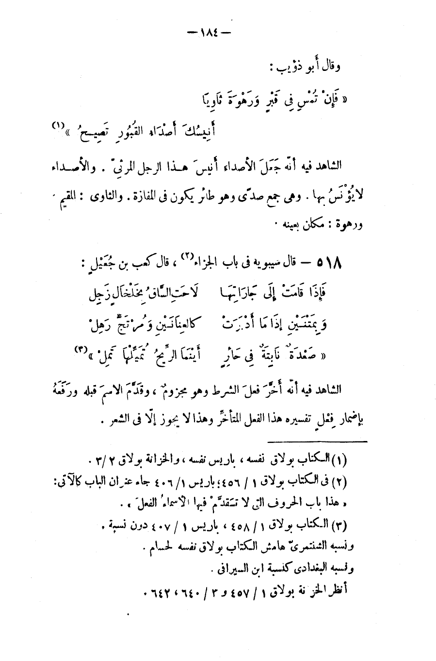 قال سيبويه في باب الجزاء، قال كعب ابن جُميل: