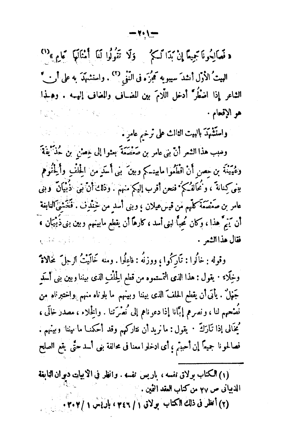 البيت الأول أنشد سيبويه عجزه في المنفي، واستشهد به على أن الشاعر إذا اضطر أدخل اللام بين المضافْ والمضاف إليه، وهذا هو الإقحام.