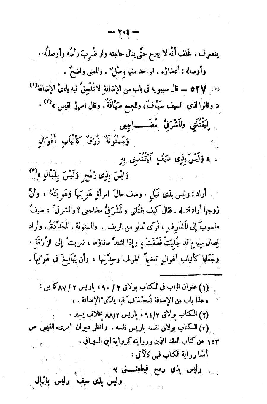 قال سيبويه في باب من الإضافة لا تُلحِق فيه ياءيْ الإضافة: (وقالوا لذي السيف سيّاف والجمع سيّافة). وقال امرؤ القيس: