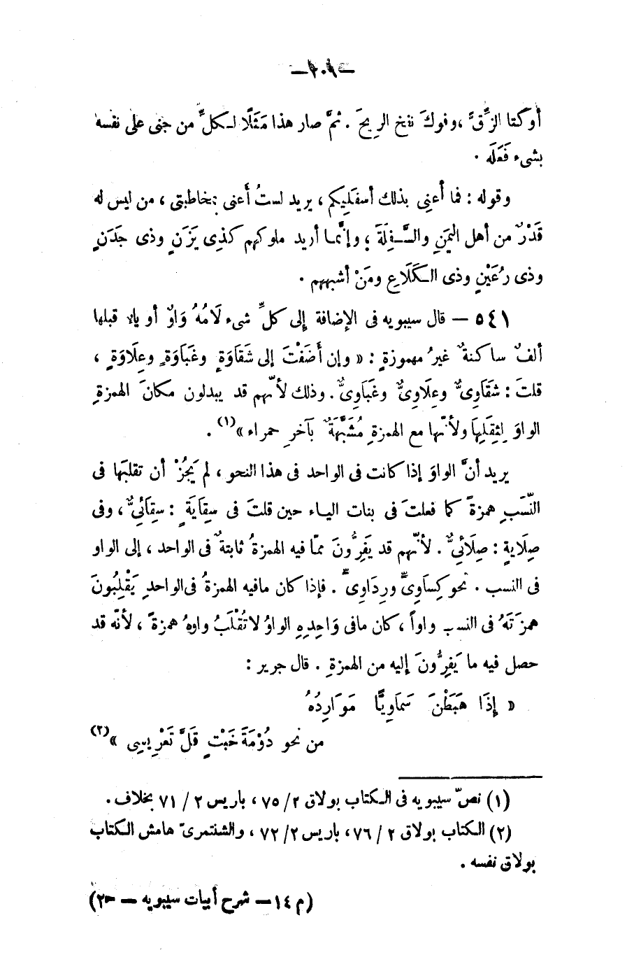 قال سيبويه في الإضافة إلى كل شيء لامه واو أو ياء قبلها ألف ساكنة غير مهموزة: (وإن أضفتَ إلى شقاوة وغباوة وعِلاوة قلت: شقاوي وعِلاوي وغباوي وذلك لأنهم قد يبدلون مكان الهمزة الواو لثقلها، ولأنها مع الهمزة مشبهة بآخِر حمراء).