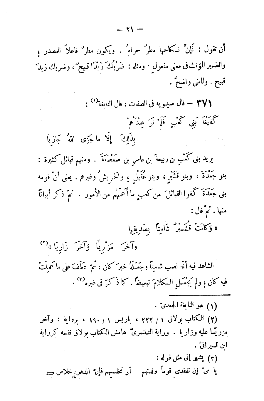 الشاهد فيه إنه نصب (شامتا) وجعله خبر (كان) ثم عطف على ما عملت فيه (كان) ولم يجعل الكلام تبغيضا كما ذكر في غيره.