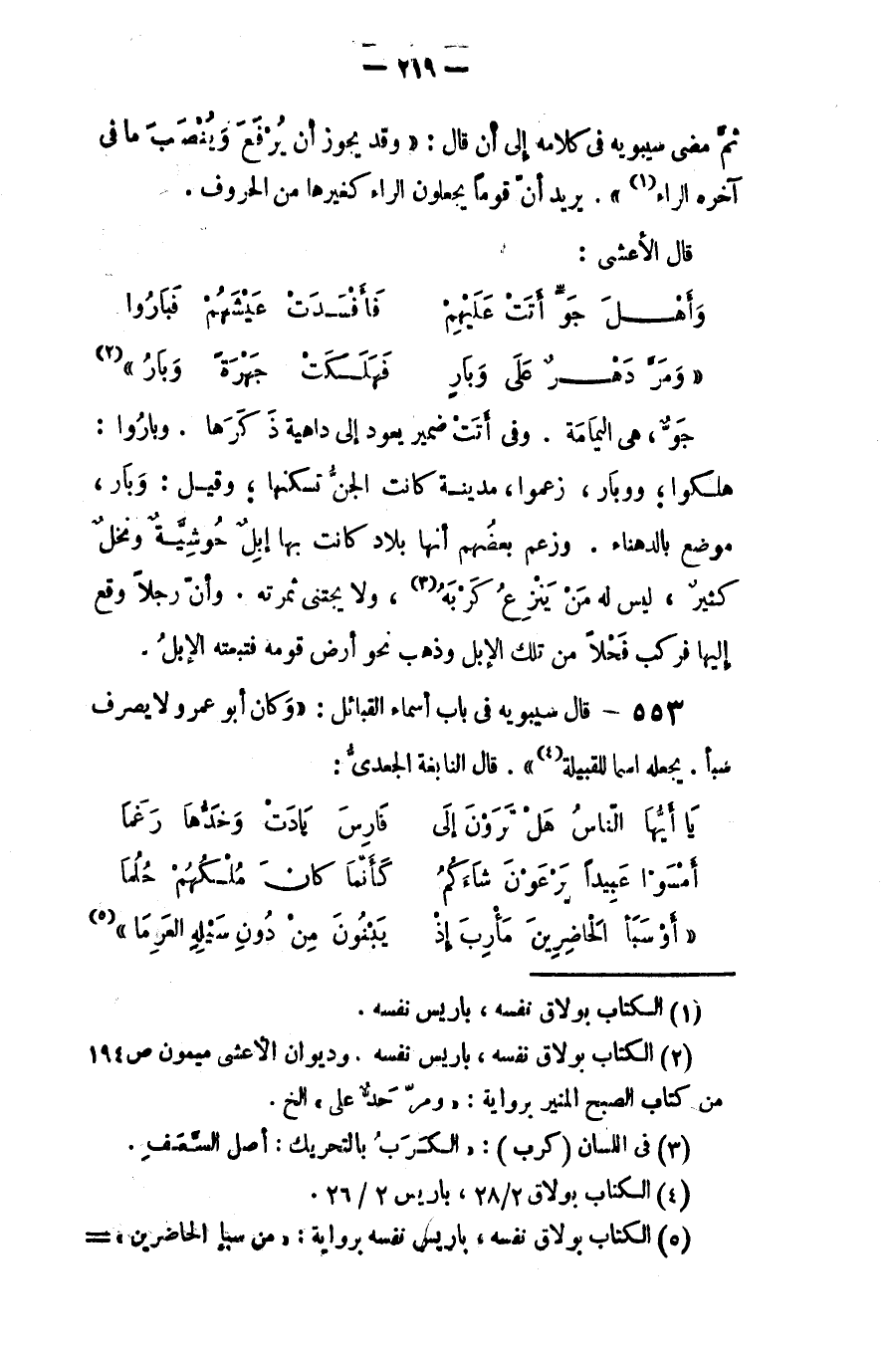 ثم مضى سيبويه في كلامه إلى أن قال: (وقد يجوز أن ترفع وتنصب ما في آخره الراء). يريد أن قوماً يجعلون الراء كغيرها من الحروف. قال الأعشى:
