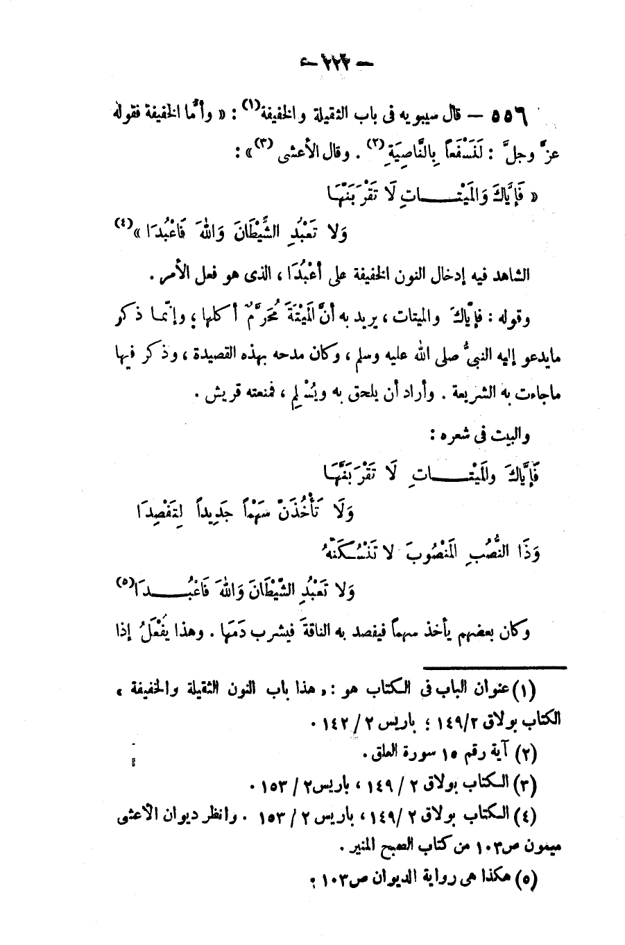 قال سيبويه في باب الثقيلة والخفيفة: (وأما الخفيفة فقوله عز وجل: (لنسفعاً بالناصية) وقال الأعشى):