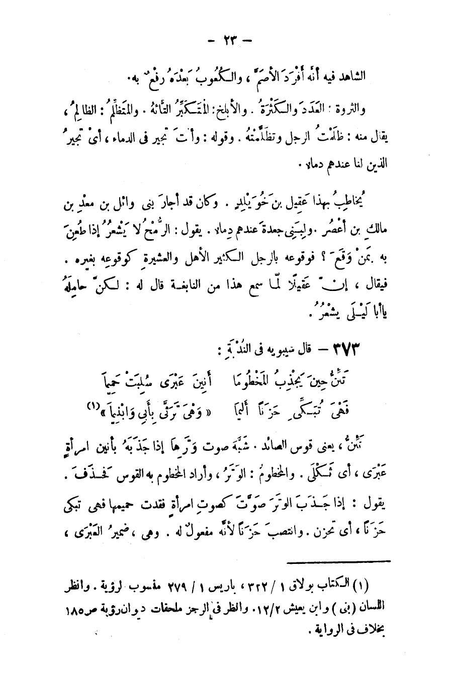 تئن: يعني قوس الصائد، شبه صوت وترها - إذا جذبه - بأنين امرأة عبرى أي ثكلة، والمخطوم: الوتر، وأراد المخطوم القوس، فحذف. فيقول: إذا جذب الوتر صوتت كصوت امرأة فقدت حميمها، فهي تبكي حزنا، أي تحزن. وانتصب (حزنا) لأنه مفعول له و (هي) ضمير العبرى،