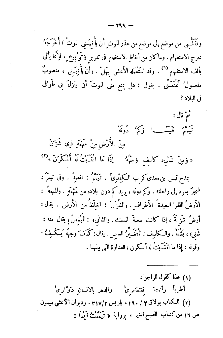 تيممُ قيساً وكم دونه ... من الأرض من مَهْمَةٍ ذي شزَنْ