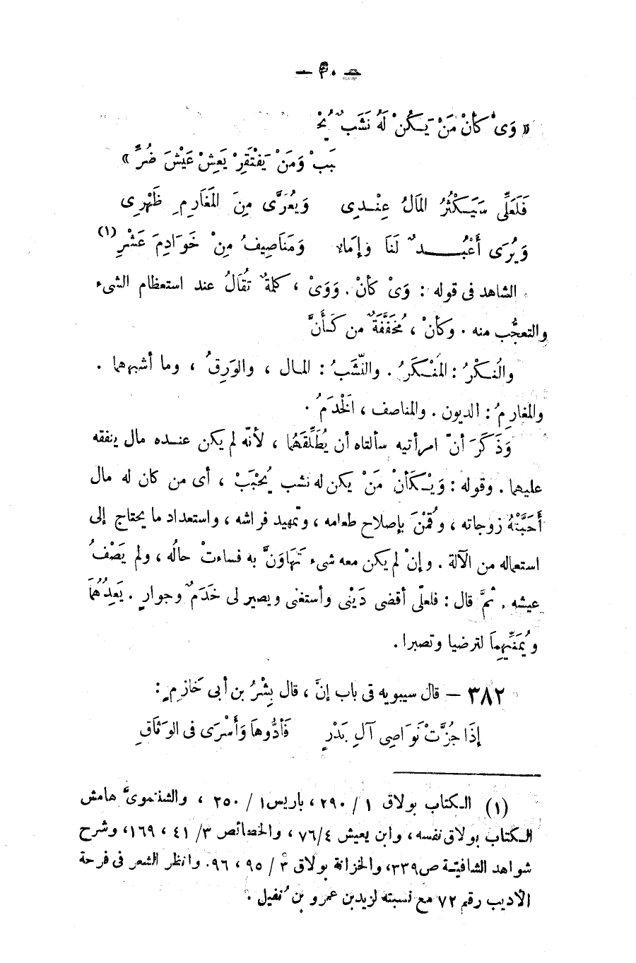 (ويكأنْ من يكن له نشبُ يحببَ ... ومن يفتقرْ يعشْ عيشَ ضُرِ)