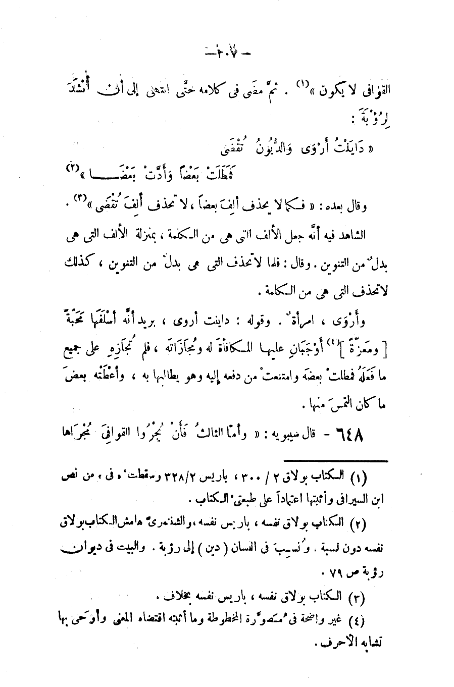 القوافي لا يكون). ثم مضى في كلامه حتى انتهى إلى أن أنشد لرؤبة: