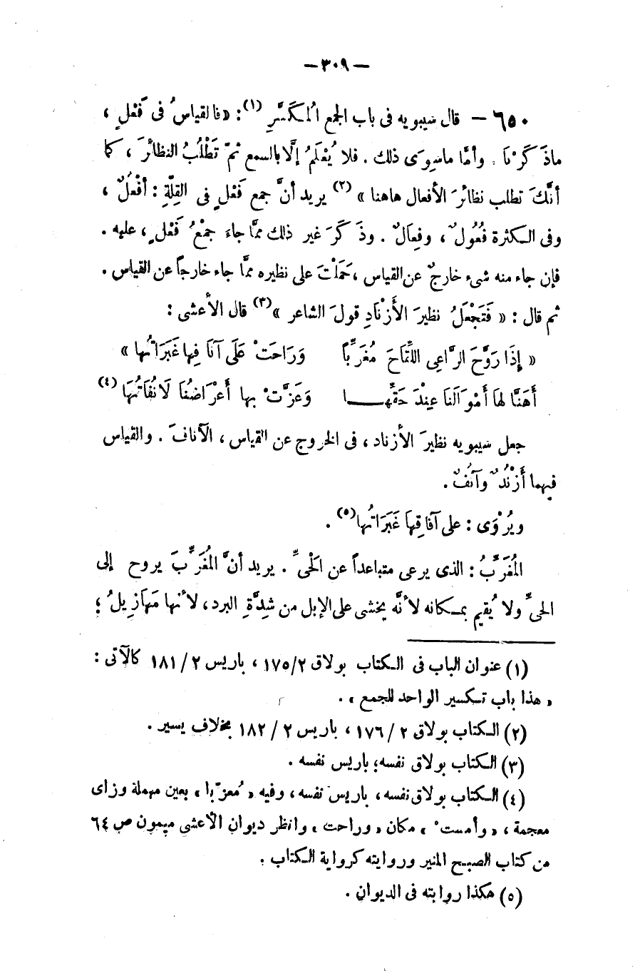 قال سيبويه في باب الجمع المكسّر: (والقياس في (فَعْل) ما ذكرنا، وأما ما سوى ذلك فلا يُعلم إلا بالسمع، ثم تَطلُب النظائر كما أنك تطلب نظائر الأفعال هاهنا).